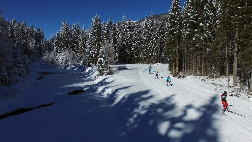 Na severní straně Gailu je údolí otevřené, jakmile přejedete říčku, dostanete se na užší lesní cesty a do kopců. Velkou výhodou je, že zde nepřenášíte silnice a povětšinou jedete velmi plynule. Na druhou stranu se ale poměrně často mění podmínky ze sněhu ležího ve stínu a na slunci a je trochu těžší chytit tu správnou mázu. V žádném případě se nevyplácí testovat stoupací vosky zrovna na biatlonovém stadionu.