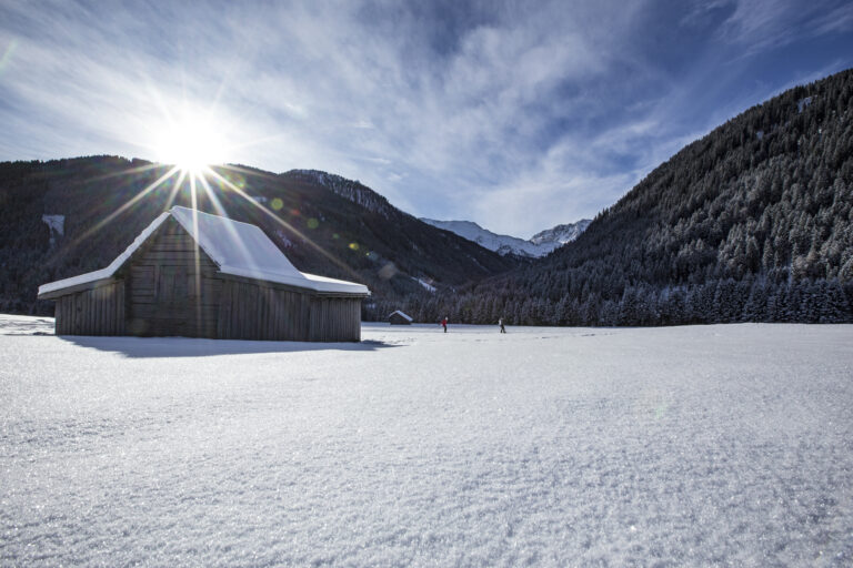 Ticho, klid, hromady sněhu, dřevěné seníky a jen slyšíte, jak vám hezky běžky šustí pod nohama. Horská vesnice Obertilliach sice patří mezi známá alpská lyžařská střediska, ale kvůli omezené ubytovací kapacitě zde rozhodně nebudete potkávat ve stopě davy běžkařů.
