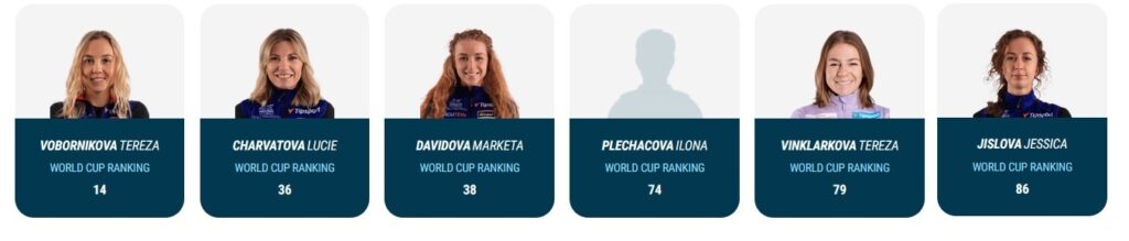 Tereza Voborníková se nachází na 14. místě ve Světovém poháru. Další českou reprezentantkou je Lucie Charvátová, která je aktuálně na 36. příčce. Markéta Davidová se drží při své absenci na 38. místě. Dále následuje Ilona Plecháčová na 74. místě, za ní Tereza Vinklárková, která figuruje na 79. pozici. Poslední z českých biatlonsitek je Jessica Jislová, jež se nachází na 86. místě světového žebříčku.
