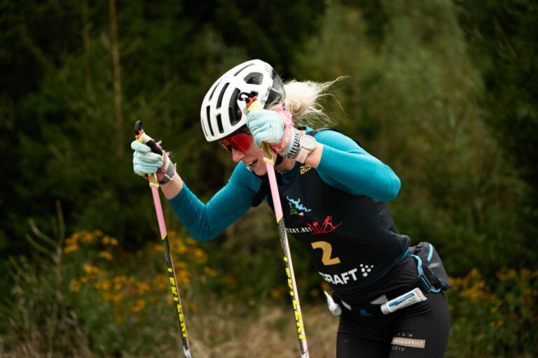 Vysoká česká závodnice – snadno rozpoznatelná podle dlouhých blond vlasů – se v létě udržela těch nejlepších až do cíle v závodě na kolečkových lyžích na Alliansloppetu. Dříve mívala tendenci po několika kilometrech odpadnout, ale teď ukázala, že dokáže držet tempo na celé trati.