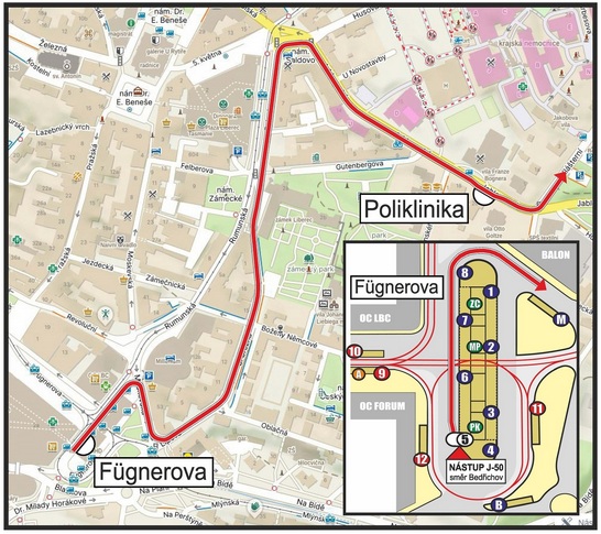 Terminál MHD Fügnerova, nástupiště č. 5 (viz mapka níže)