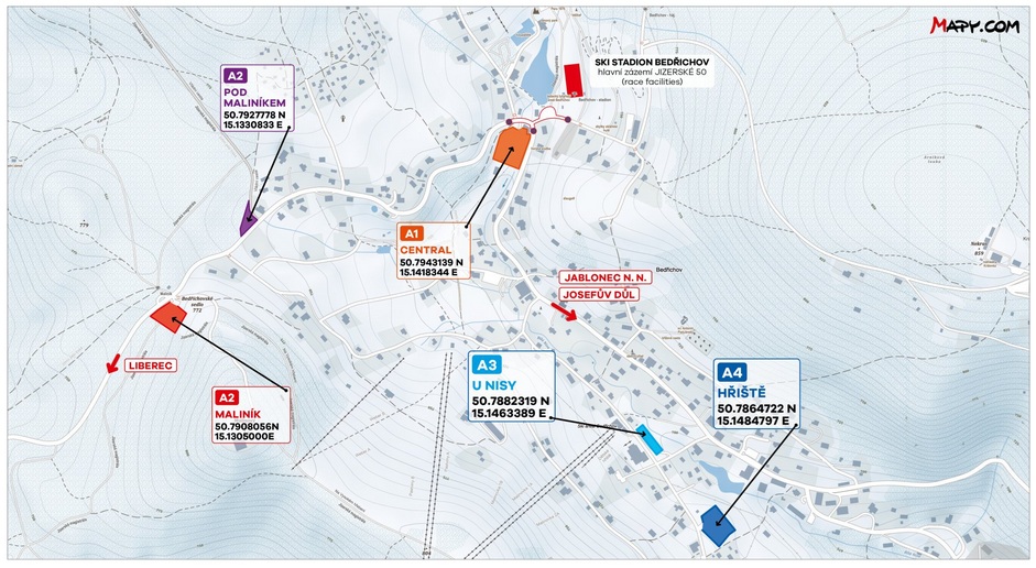 Bedřichov není uzavřen. Parkování je možné na A2, A3 a A4 bez parkovací karty vydané pořadatelem, parkovné uhradíte při výjezdu z parkoviště (do naplnění kapacit, celá kapacita parkoviště A1 je rezervována pro držitele parkovacíh karet vydaných pořadatelem).